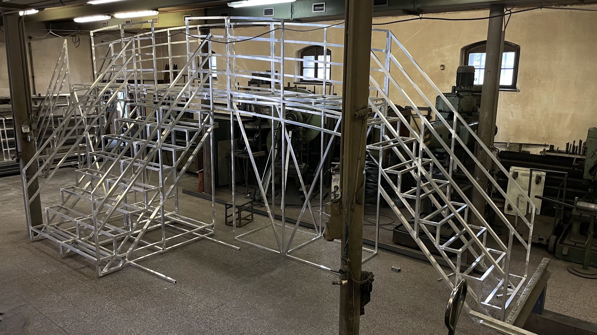 | ← Tor aus glatten Profilen wie „geschmiedet“, Zink und Farbe | Treppe (für Holzstufen) mit Geländer und Tor, feuerverzinkt → |