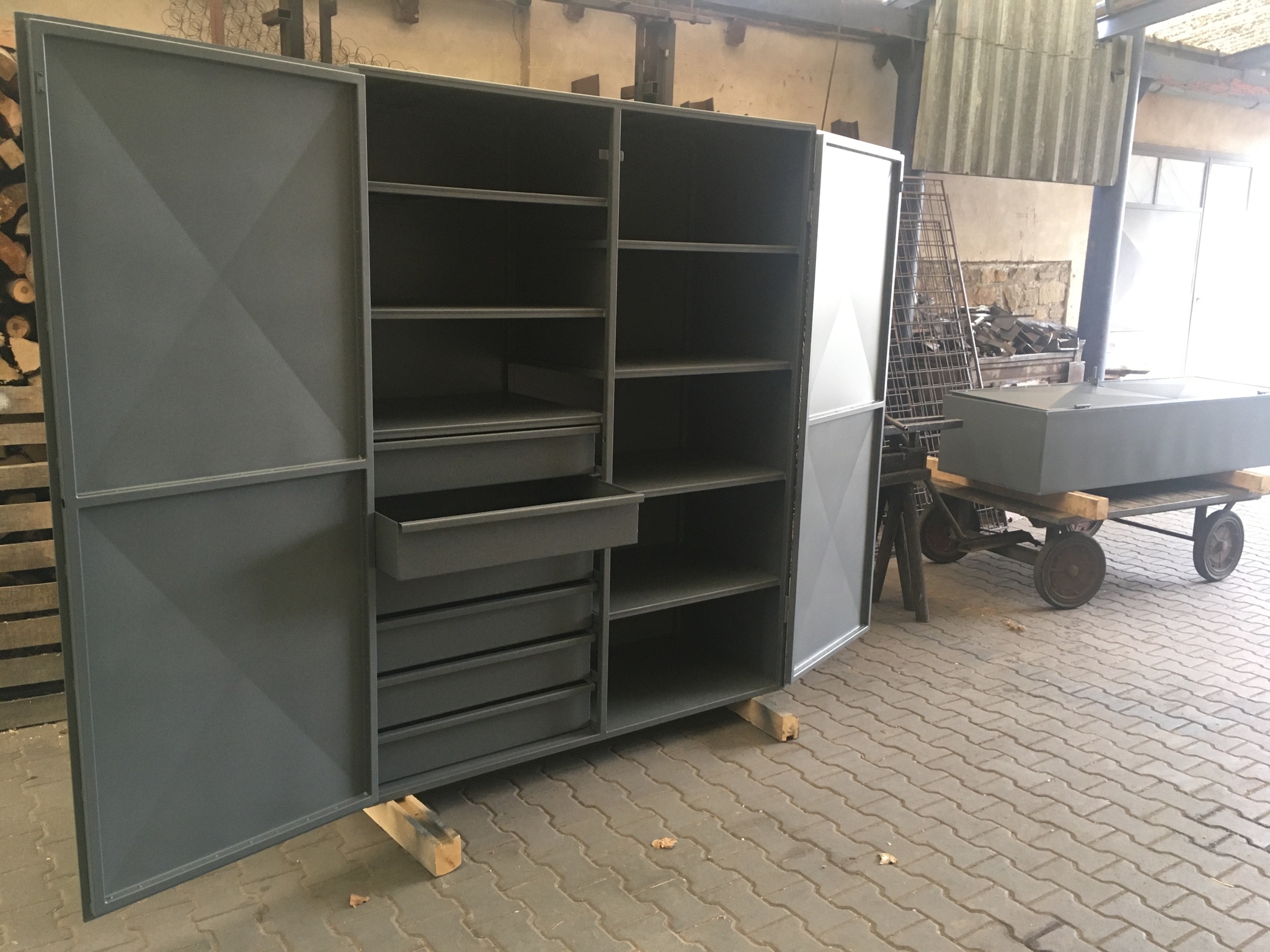 Drobné okrasné ocelové konstrukce, ochranné pletivo stromků, kotlíky pro zahradní kuchyni s nerezovým tácem a poklicí, skříňky HUP, rozdělovače vody, stolky z kovaných profilů, plechové udírny, atd.